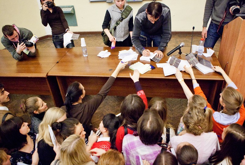 После этого о книге не было сказано ни слова и вспомнили о ней только к концу вечера: студенты – кто быстрее – расхватали, в общем-то, небольшую стопку и тут же столпились с книгами возле автора – получить автограф.