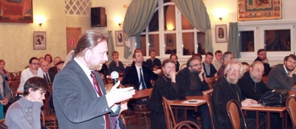 Существенные вопросы, связанные с осуществлением амбициозного издательского проекта, поставил в своем выступлении ответственный редактор «Журнала Московской Патриархии» С. В. Чапнин.