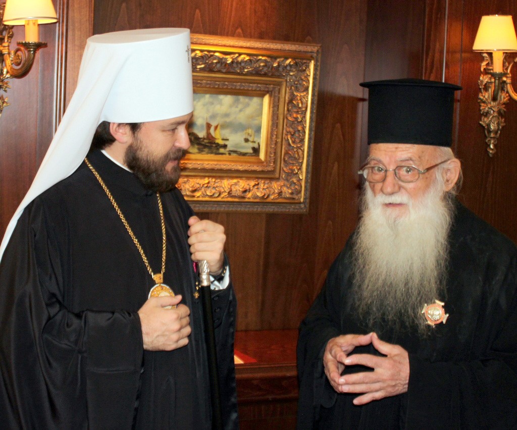25 сентября. ПРАВМИР. Митрополит Волоколамский Иларион встретился 24 сентября с руководителем Центра патристических изданий в Афинах протопресвитером Иоанном Диотисом.