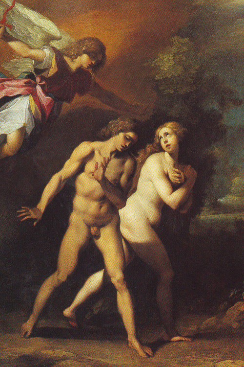 Когда первые люди согрешили, им стало стыдно и страшно, как это и бывает со всеми, кто дурно поступает. Они тотчас же заметили, что они наги. Чтобы прикрыть свою наготу, они сшили себе из листьев смоковницы одежду, в виде широких поясов. Вместо того, чтобы получить совершенство, равное Божиему, как они того хотели, получилось наоборот, разум их помрачился, совесть их стала мучить, и они лишились душевного спокойствия.