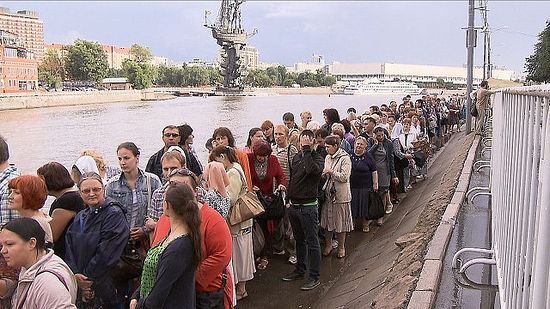 Суббота, 20 июля 2013 г., 09:00. Конечно, проспала и вышла из дома позже, чем собиралась, а именно, в девять. Решительно не понятно, очередь какой длины ждет меня на набережных, но хотелось бы успеть к всенощной вернуться в свой храм, — завтра Казанская.