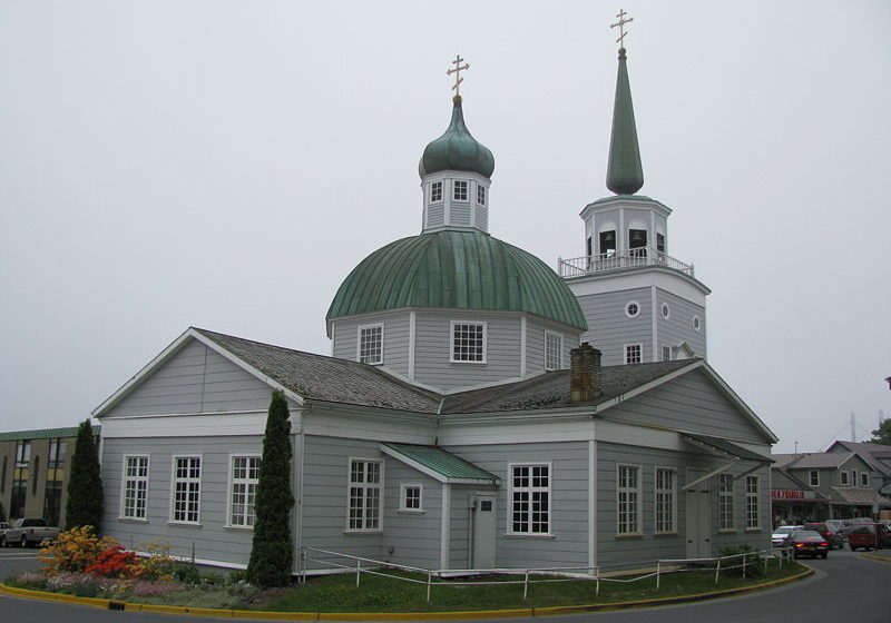 Собор был построен из еловых бревен в 1844-48 гг. Проект храма сделал святитель Иннокентий (Вениаминов), просветитель Аляски. Св. Иннокентий своими руками собрал часы, которые сейчас находятся в часовне. В 1966 году собор сгорел. Реконструировали его по проекту русского архитектора Сергея Падюкова в 1976 году. При пожаре были спасены практически все иконы собора – местные жители передавали их по цепочке из рук в руки.