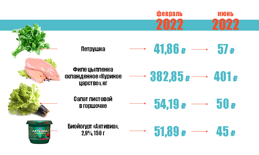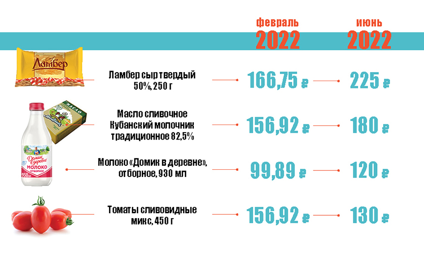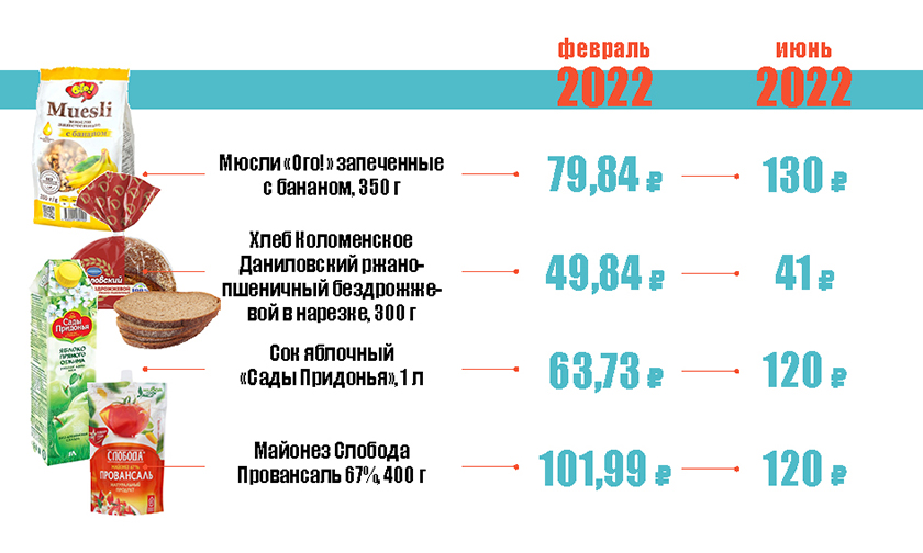У корреспондента «Правмира» сохранились чеки за февраль 2022 года. Мы сравнили их с ценами, по которым тот же магазин предлагает купить те же продукты сегодня. Что изменилось за четыре месяца — в инфографике.