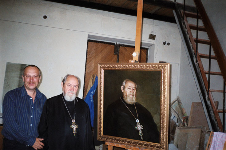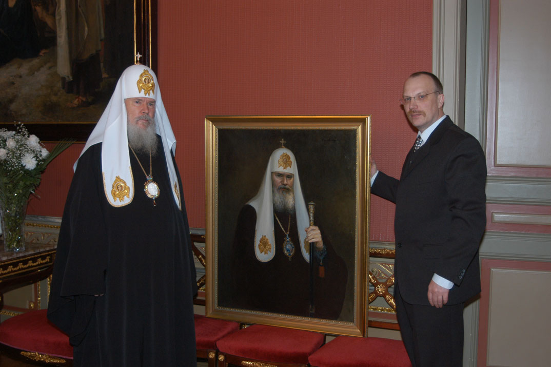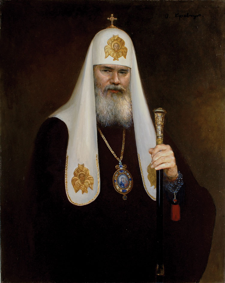 Я писал, встречался с ним, снова писал, ездил в Москву пару раз. Конечно, я не могу сказать, что писал портрет полностью с натуры, очень много материала я брал из того, что мне специально высылалось. Там было оговорено все, от четок на руке и о том какая панагия должна быть на шее, в каком он должен быть облачении, то есть все. Но портрет был не парадный, в повседневной одежде, поясной.