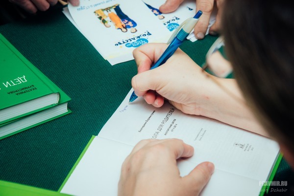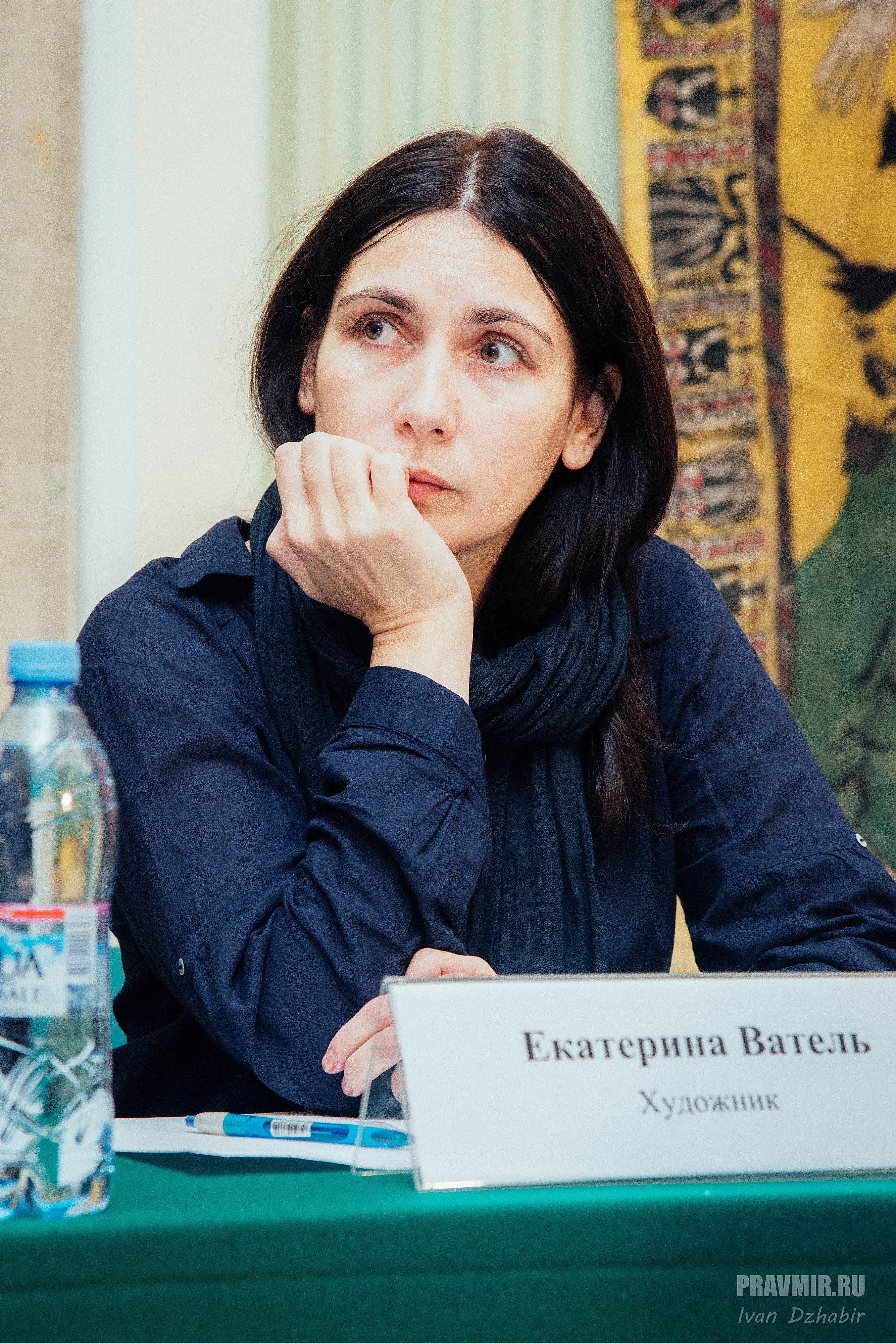 Сейчас будет говорить наш замечательный художник Катя. Дело в том, что когда росли мои старшие дети, Катины дети росли, мы были вместе в этом взрослении, и я у нее тоже что-то подсматривала. Я всегда знала, что Катя удивительно рисует, у нее совершенно уникальный стиль. Она ведь не первую мою книжку иллюстрирует – она иллюстратор уже нескольких книг. Я думала: «Здорово было бы, выйдет книжка, я Катю попрошу рисунки нарисовать». Эти дети, которые сейчас уже дяди и тети, тогда еще были маленькими, но вот дети выросли, книжки вышли. Я очень рада, что именно Катя их иллюстрирует. Я бы хотела, чтобы вообще все мои книжки, которые еще когда-то выйдут, были Катей проиллюстрированы. Мне Катин взгляд очень подходит, мне кажется, что она всё правильно рисует, именно так, как я вижу.