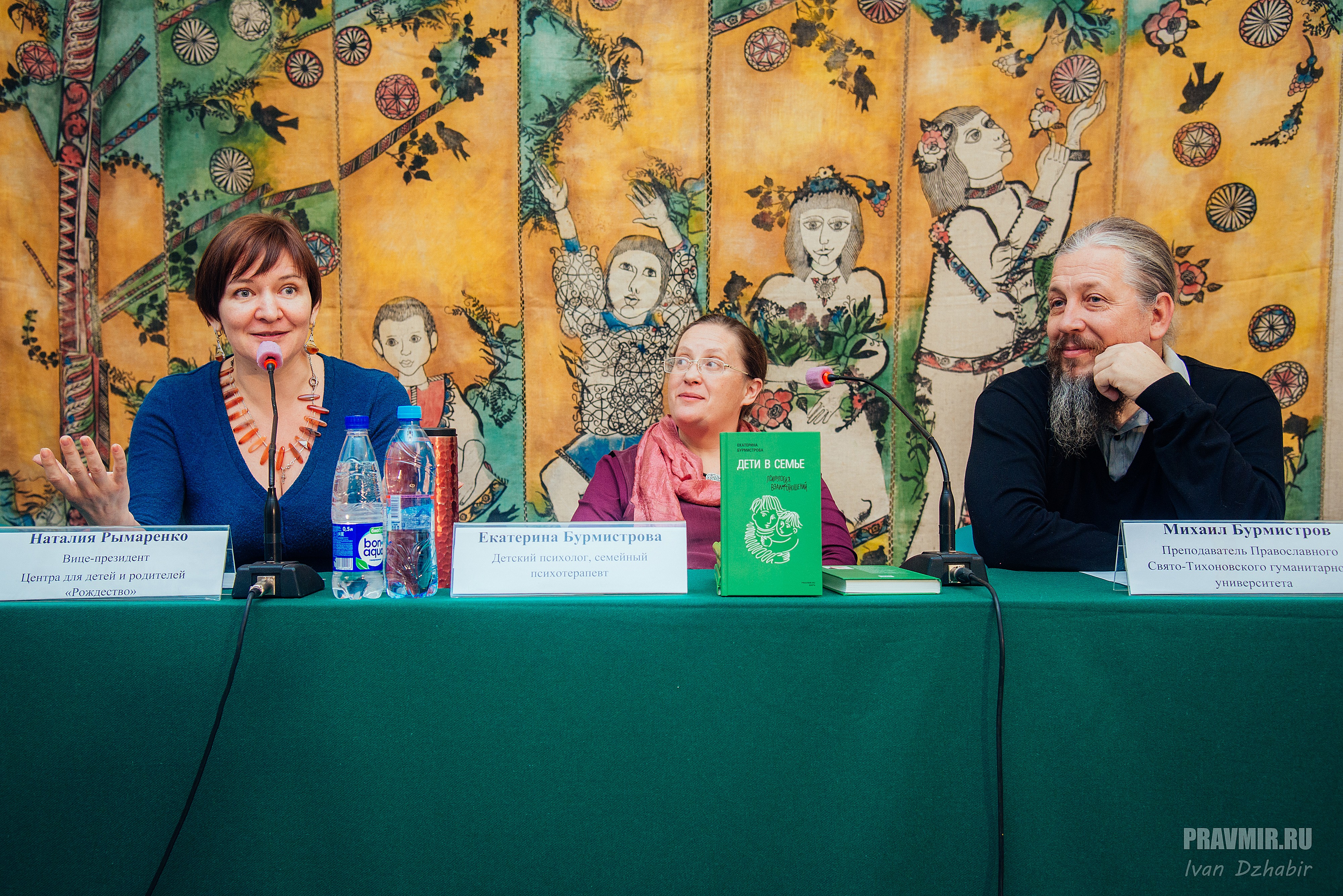 Екатерина Бурмистрова: У нас в этом году уже вторая встреча в «Покровских воротах». Первая была в октябре. На декабрь планируем еще одну встречу. Сегодня мы будем говорить на тему, связанную с выходом этой книги, – об отношениях детей в семье.