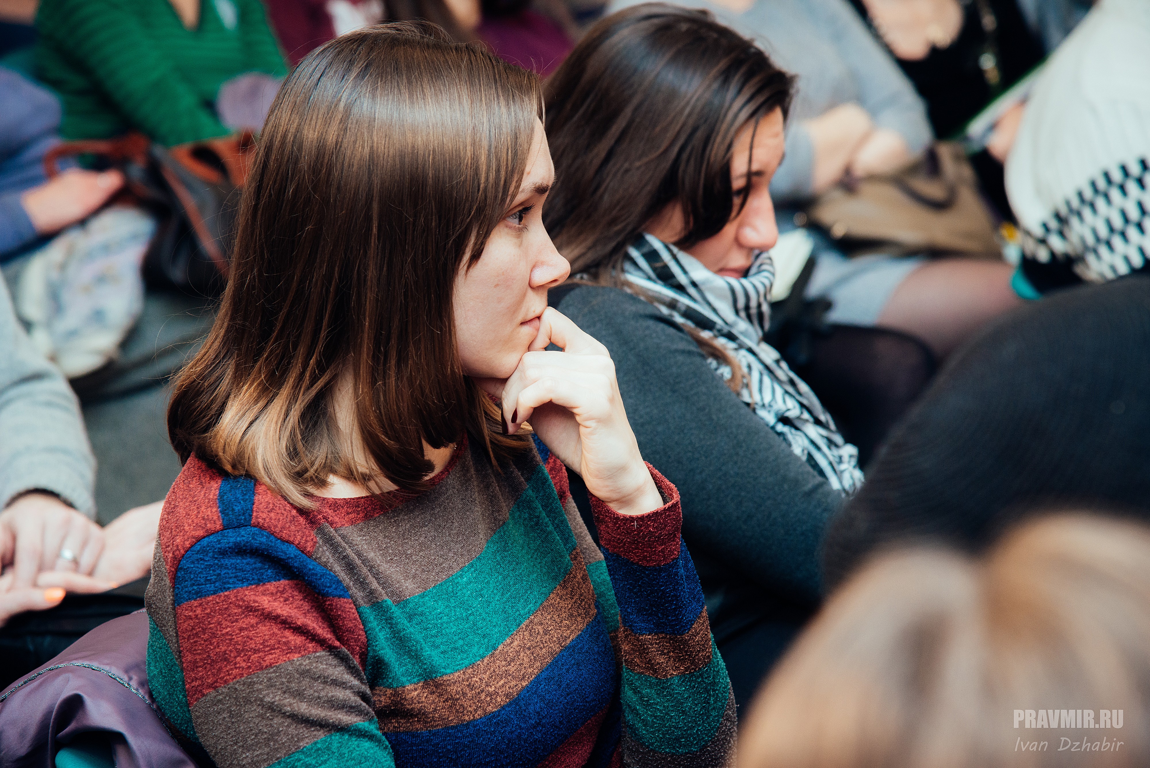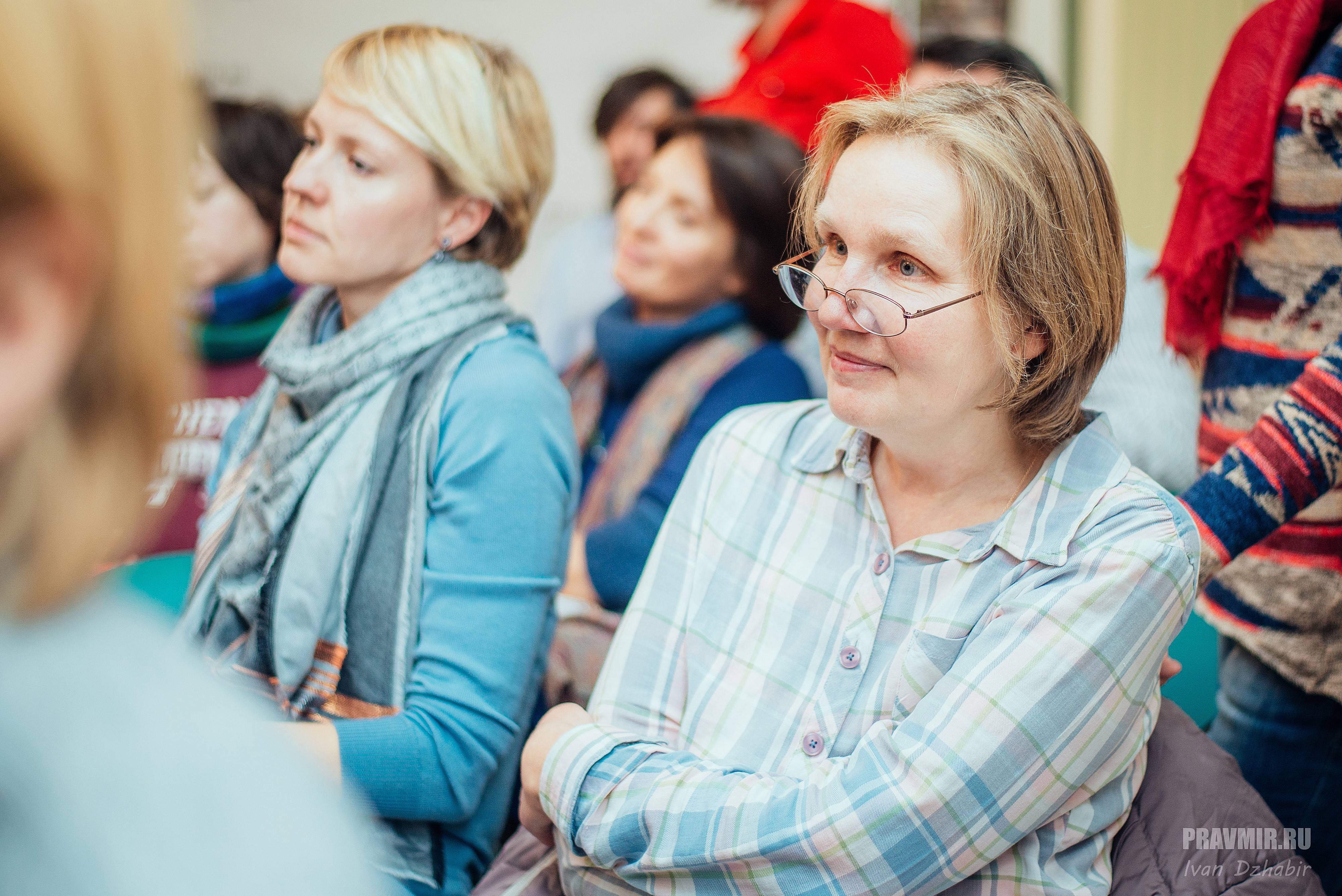 Екатерина Бурмистрова: Здесь стандартная родительская аудитория, где достаточно много отцов. Это всегда комплимент. Когда на занятие, лекцию или встречу приходят отцы – это я как комплимент воспринимаю, значит, контент стоящий. Я не хочу обидеть женщин, но мужчины более критичны, и им совсем уж лапшу на уши не навешаешь, они обладают более низкой внушаемостью.