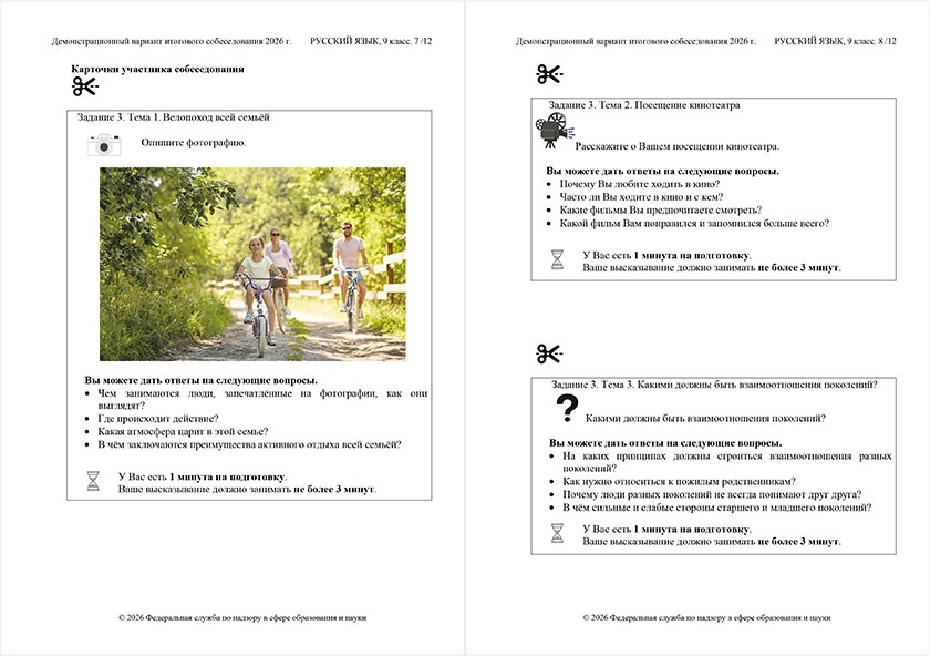 Давайте посмотрим первую тему из демоверсии-2026, там предложена фотография велопохода с семьей и следующие вопросы: