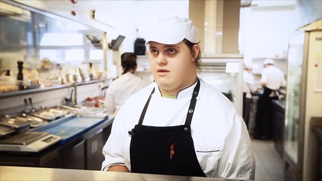 Если в штате только римской La locanda людей с ограниченными ментальными возможностями одиннадцать, то помощник повара в холодном цеху «Кофемании» — один на всю Россию. Здороваясь, 24-летний Никита Паничев целует мне руку, смущается и пропускает вперед, когда мы выходим в зал. Спрашиваю, не устал ли он от внимания со стороны прессы и телевидения. Говорит, нет. Разве что после репортажей его узнают в метро и даже просят автографы. «Но я отказываю. Я же не звезда».