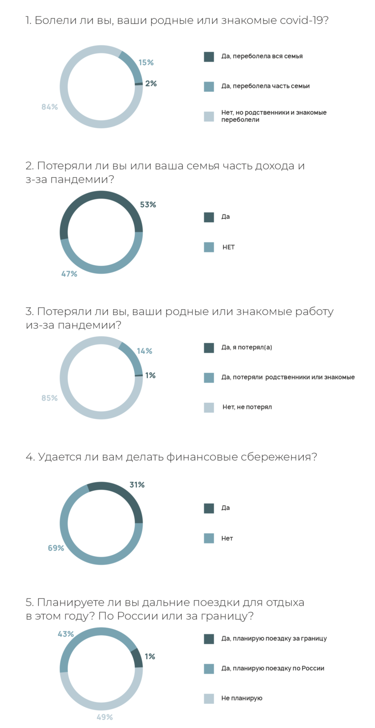 У 15% опрошенных covid-19 переболела вся семья, у 2% — часть семьи, остальные пока не столкнулись с болезнью непосредственно, но их родственники или знакомые переболели.