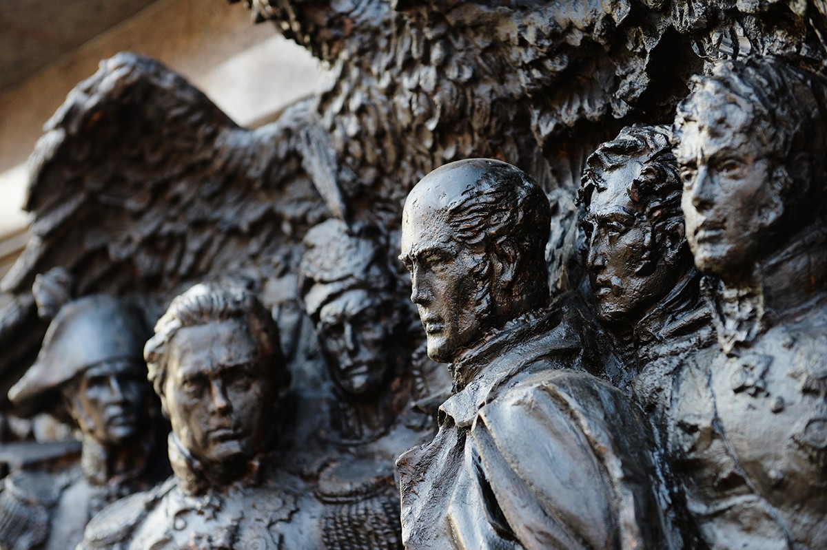 Участники церемонии возложили цветы к монументу и осмотрели архитектурно-скульптурную композицию и барельефы памятника.