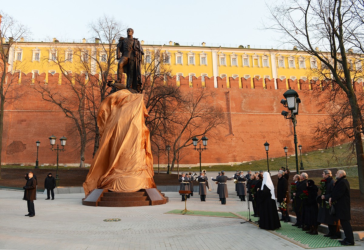 Монумент императору Александру установлен у Кремлевской стены близ Боровицких ворот в Александровском саду, который был создан по его указу, — сообщает Пресс-служба Патриарха Московского и всея Руси