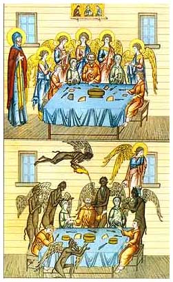 По приглашению и по зову сердца ходите в гости друг к другу. Как любовь к Господу подразумевает отношения с Ним, так и заповеданная любовь к ближнему выражает себя в отношениях с ним. Эти отношения — наше участие в счастье ближнего и наша помощь в несчастье. Апостол говорит: «Радуйтесь с радующимися и плачьте с плачущими» (Рим. 12, 15). И потому, если ты зван на пир — спеши. Господь введет тебя в дом друга участником его радости. За дружеской трапезой Сам Господь посреди нас, ибо обещал Он; «Где двое или трое собраны во имя Мое, там Я посреди них» (Мф. 18, 20).