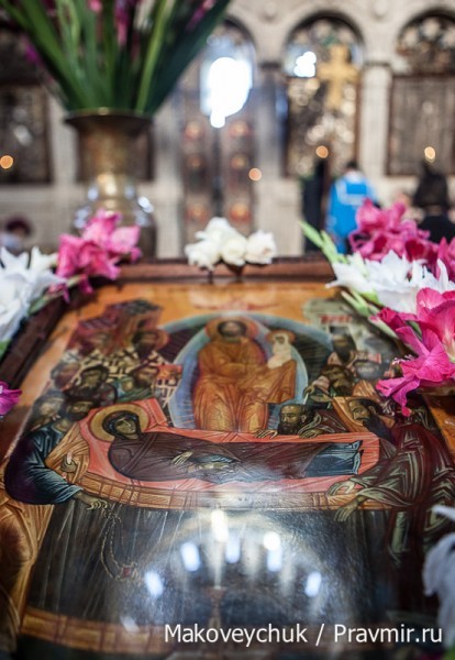Кто умирал так из земнородных, как умерла Пресвятая Богородица? Чье смертное ложе окружали лики апостолов? В возглавии чьего смертного одра сияла небесным светом райская ветвь, принесенная архангелом Гавриилом за три дня до смерти Пресвятой Богородицы?