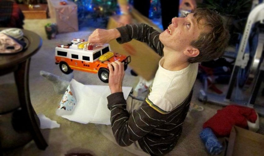 Максу 25 лет, у него ДЦП и ментальная инвалидность. Яркий оранжевый грузовик – это единственная вещь, с которой он готов играть часами. По этой причине игрушка быстро ломается, а старые грузовики разбираются на запчасти, чтобы при необходимости использовать их снова.