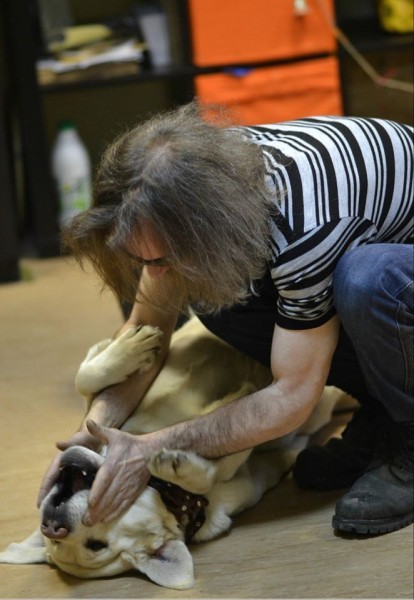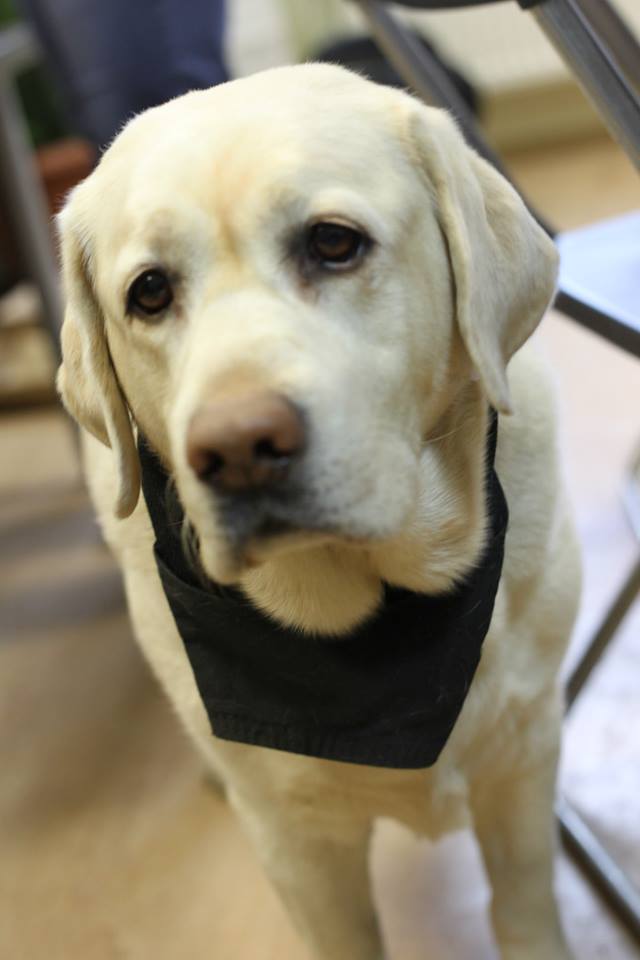 Михаил – подопечный фонда, хозяин собаки-проводника Кэти. Собака лежит рядом – большущий лабрадор нежного персикового цвета. Кэти при виде меня не встает, здороваться не подходит и вообще демонстрирует полное спокойствие и отрешенность – когда надо позовут.