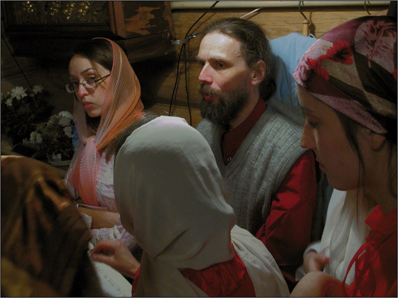 Несколько часов поют все. Поют и устанут. И начнут петь не так бодро, затягивают и пение уже льётся с истомой. Тут выйдет батюшка и сам даст тон: быстрее и радостней. Снова радостно грянут и снова затянут древним старообрядческим напевом. Нина Афанасьевна бодрит народ, дирижируя и улыбаясь: что поете, как городские! Уж напоешься от души за весь год. И никто не корит за то, что нет слуха. Пой, брат ты дорогой, сколько душа просит перед народом и Господом.