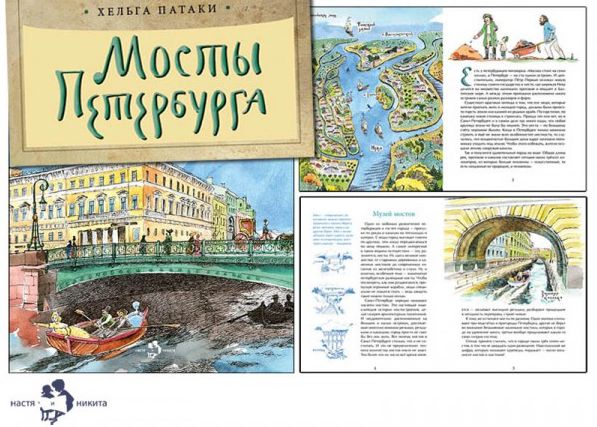 Теперь Санкт-Петербург и окрестности, снова с «Настей и Никитой». В книжке Дины Арсеньевой «Пешком по Невскому» рассказывается о красе и гордости города — Невском проспекте, о всех знаменитых зданиях, расположенных на нём. Аничков мост, знаменитые фонари и гуляющие по Невскому слоны — там их, наверное, и увидел баснописец Крылов! — давайте же и мы пройдемся по этой знаменитой улице. По дороге можно отвлекаться на мосты: о них очень интересно и подробно рассказала Хельга Патаки в книжке, которая так и называется — «Мосты Петербурга». Оказывается, сначала Петр Первый вообще не собирался устраивать в городе дороги! Жители должны были передвигаться по своим делам на лодках! Но жизнь взяла свое и в Петербурге появились мостики, мосты, мостищи — их около трёх сотен. А вот какими они бывают — от наплавного до разводного — и как устроена их конструкция как раз и рассказывается в книжке.
