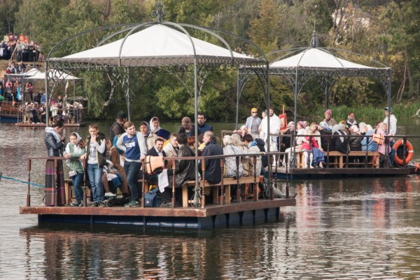 И этот переезд сопровождался народными гуляниями, проводами лета и так далее. Это был чудесный праздник с большой народной ярмаркой, с раздачей подарков. Елизавета Федоровна сама руководила розыгрышем лотереи, сама вручала подарки – необходимые крестьянам отрезы ситца и сапожный товар, раздавала лакомства детям. Пускали шутихи, воздушные шары. Конечно же, празднику предшествовала молитва.