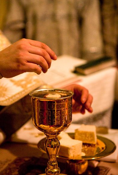 Ириней пишет: «Так же, как хлеб, произрастающий из земли, перестает быть просто хлебом, когда Господь снизошел на него и хлеб стал причастием, состоящим из двух частей: земной и небесной; так же и наши тела, получившие причастие, более не являются тленными, и для них есть надежда воскресения».