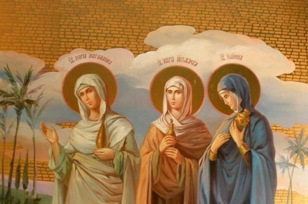 Воскресший Христос явился Марии Магдалине и второй Марии в пустой гробнице, согласно Евангелию от Матфея (Мф. 28), и также приказал Марии пойти рассказать ученикам, что Он воскрес. По этой причине жен-мироносиц иногда называют «апостолами апостолов».