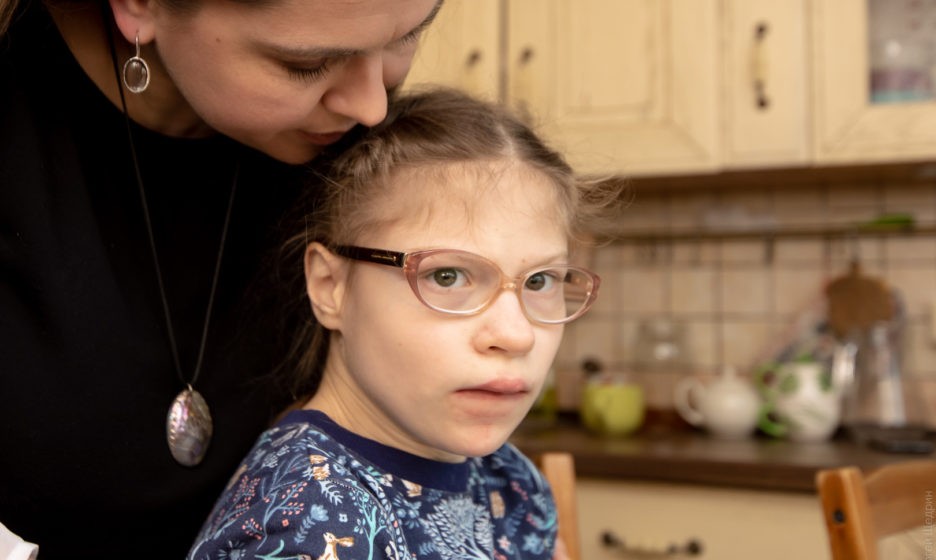 Сейчас Маше 13 лет, она — подросток со множественными тяжелыми особенностями развития. Она не разговаривает, ходит с поддержкой, не может сама себя обслуживать, ест сама, но при специальных условиях — она не может просто взять печенье и отправить его в рот. Когда она сидит в определенной позе, на определенном стуле, в специальном фартуке и ест из специально отведенной тарелки специальной ложкой — тогда что-то получается.