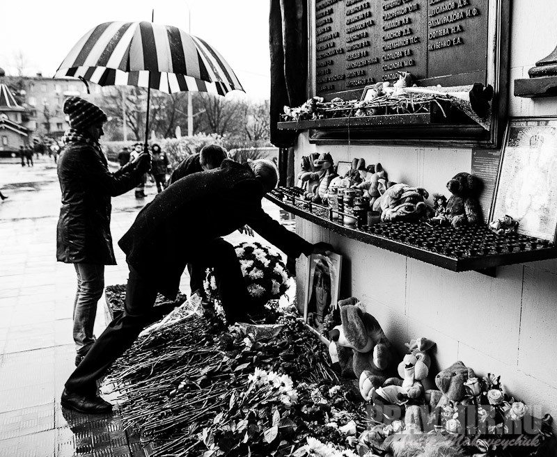 Мама Ольги тоже живет недалеко отсюда и нерегулярно, но достаточно часто ходит к нам в храм. Вообще в храм постоянно кто-то заходит и свечку поставить, и записку подать. Молитва – дело глубоко личное, если человек хочет поделиться своими переживаниями, он сам о них расскажет, поэтому мы не можем точно знать про каждого, кто заходит в наш храм просто потому, что проходил мимо или живет рядом, а кто специально приезжает, чтобы помолиться о близких, погибших здесь в 2002 голу.