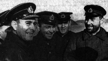 | Слева направо: командующий СФ адмирал А Г. Головко, помощник командира ПЛ З. М. Арванов,военком С. А. Лысов, командир ПЛ «К-21» Герой Советского Союза капитан 2 ранга Н. А. Лунин |
