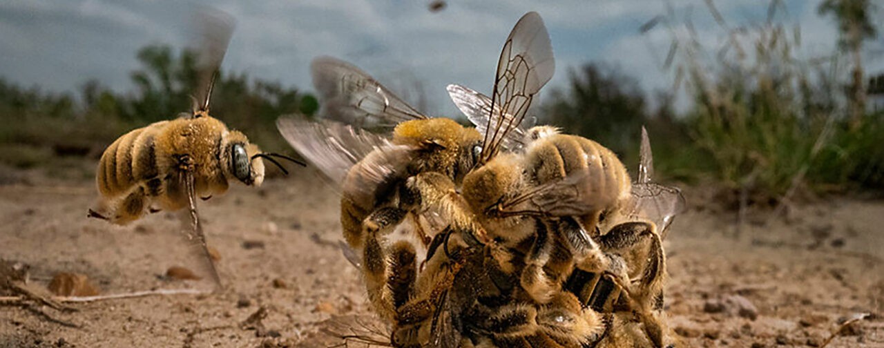 «Комок из пчел», Карин Айгнер, Техас, США. Это редкий кадр. Кактусовые пчелы роятся в брачный клубок. Этот вид пчел считаются одиночками, они живут не в колониях, как их европейские собраться, без четкой иерархии. Но занимаются той же работой и опыляют кактусы.