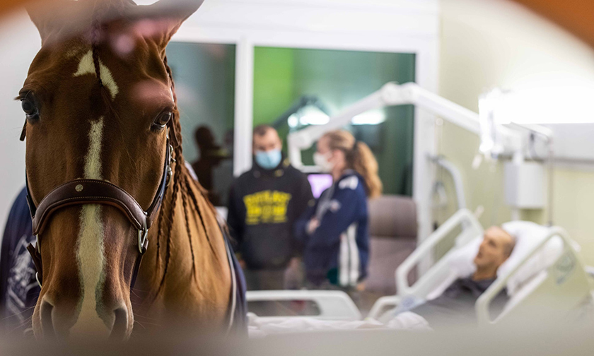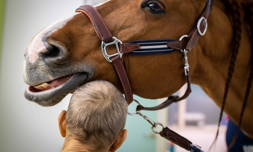 Бушакур всегда тщательно следит за гигиеной, и Пэйо моют и дезинфицируют до и после посещения больницы. На подготовку лошади уходит два часа. «Я протираю его дезинфицирующими салфетками для его же защиты, — говорит Бушакур. — К счастью, ему это нравится». Пэйо научился показывать, когда ему нужно выйти на улицу — он двигает телом справа налево.