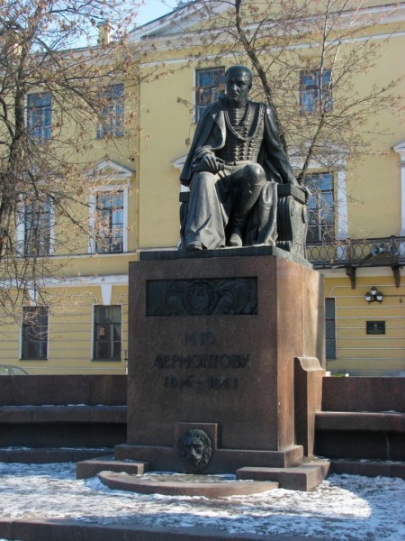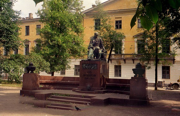 Я не помню памятников М. Ю. Лермонтову в Европейской России. Тому, кому посчастливилось посетить места его невольных скитаний, кому удалось побывать на Кавказе, навсегда запомнился живописный путь от станции Минеральные Воды до Кисловодска. Раннее утро, свежий степной воздух, наполненный ароматами цветущих полей, врывается в окна железнодорожных вагонов; силуэты Бештау, Машука и Верблюд-горы окутаны легким туманом, а по мере восхода солнца вдали начинает открываться прекрасная панорама темно-синих вершин Кавказа. Быстро спускаясь от станции Бештау к Пятигорску, поезд останавливается под склоном Машука на «Лермонтовском разъезде». Взоры всех невольно приковывает вид места дуэли со стоящим на нем памятником поэту. В то же время, на железнодорожной платформе старый слепой бандурист своею задушевной песней придает какой-то особый, грустно-романтический колорит этому исторически печальному месту.