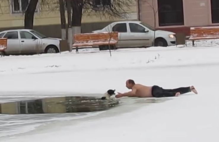 Растерянные прохожие останавливались, сочувственно смотрели, но помочь ничем не могли – страшно выходить на тонкий лед. Внезапно на пруд босиком, в одних подштанниках выбежал мужчина. Он побежал к несчастном псу.