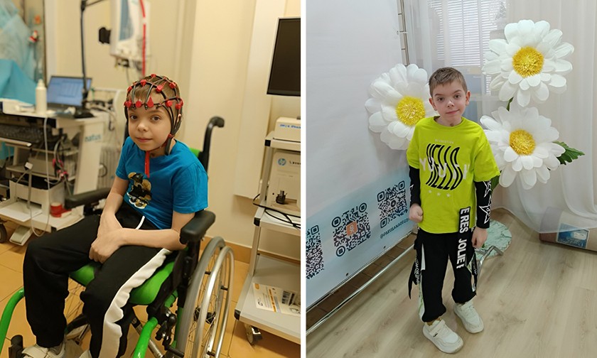 За год, помимо интенсивных ежедневных занятий дома с родителями, мальчик прошел несколько курсов восстановления в разных центрах. Сейчас он ходит на небольшие расстояния, подтягивая правую ногу. Ступня при этом завернута внутрь. Освоил трехколесный велосипед для людей с инвалидностью. Если что-то нужно взять или сделать, делает левой рукой. Правой пытается помогать, но это получается не всегда. Костя держит руку в полусогнутом состоянии — распрямить ее мешает спастика.