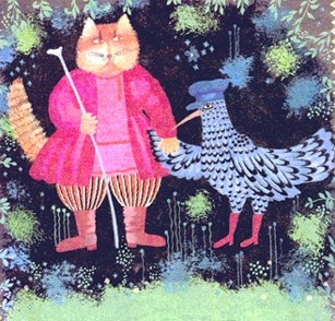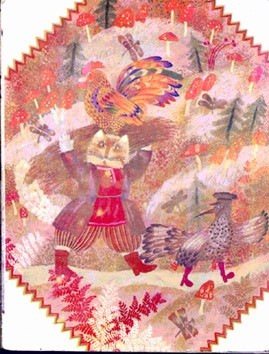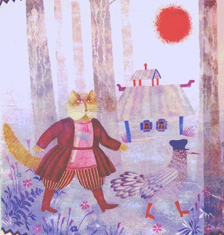 Вспомни мультик про Винни-Пуха. Какие там пейзажи! Это ТЕ пейзажи. Там нет зла. Вот предо мной детская сказка: Кот в зипунке, в полосатых штанах, в красной рубашке несет на голове Петушка, а впереди идет дрозд в красных сапожках и картузе. А вокруг грибы чудесные, елки с мотыльками. Красота. В раю они, видимо, и были такими.