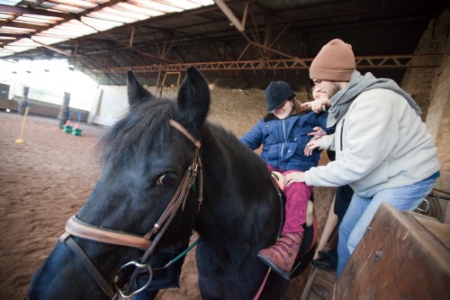 Сеанс иппотерапии. Чтобы один неходячий человек мог удержаться на лошади, ему должны помогать не менее трех ассистентов