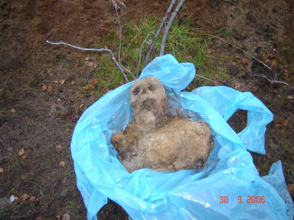 — Первый год, первый сезон, работы только сформированного отряда. Тогда моему сыну было 6 лет (сейчас – 19). Я взял его с собой, в основном, носил в рюкзаке, но тут он решил идти сам. Причем мы с другими мужчинами пошли на сопку, а он что-то все внизу – маленький, идет медленно, как не торопи. Вдруг совсем затих. «Дима, ты где?», — кричу. «Папа, я косточку нашел», — в ответ. Мы спустились, стали копать, и нашли солдата — все было при нем, и каска, и подсумки, и ремень, но он оказался безымянным.