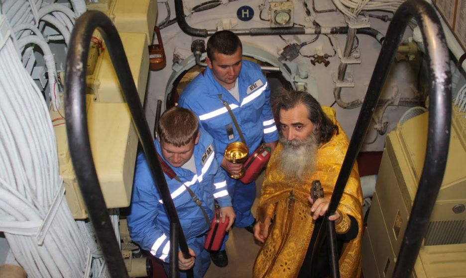 — Три выхода. На подводной лодке «Дмитрий Донской», на лодке «Александр Невский» и на подводной лодке «Северодвинск». Это обязанность военного священника — участие в морских походах, береговых, полевых и других выходах, участие в учениях. Она прописана в положении о военном духовенстве Министерства обороны.