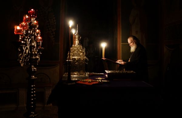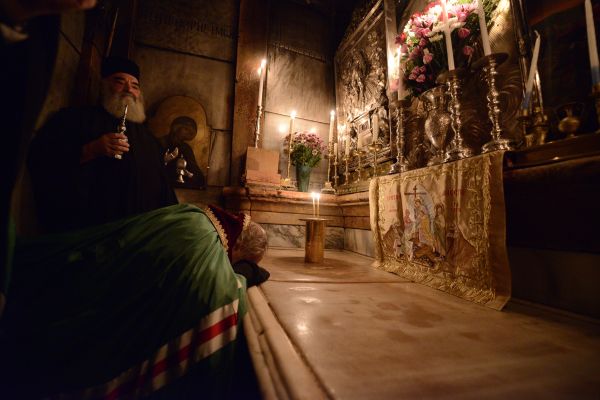 Патриарх Московский и всея Руси молится в храме Гроба Господня в Иерусалиме. Фото: Пресс-служба Патриарха Московского и всея Руси