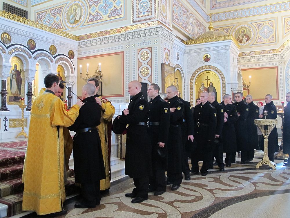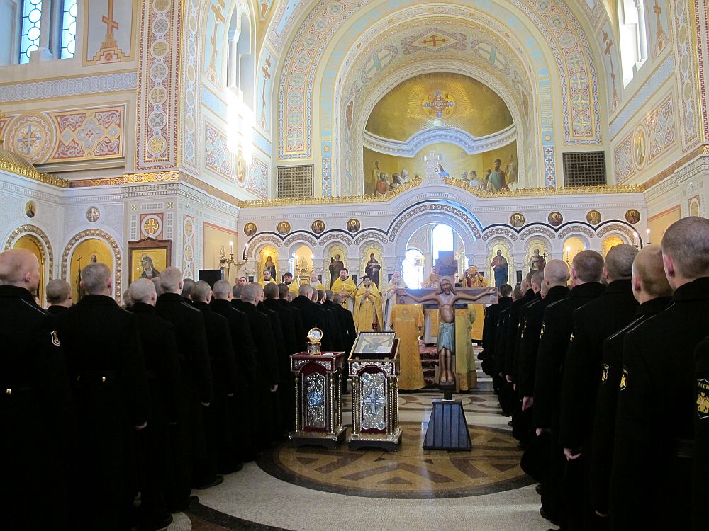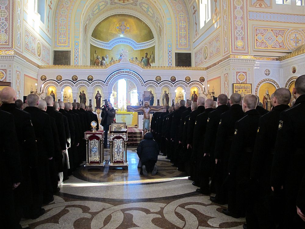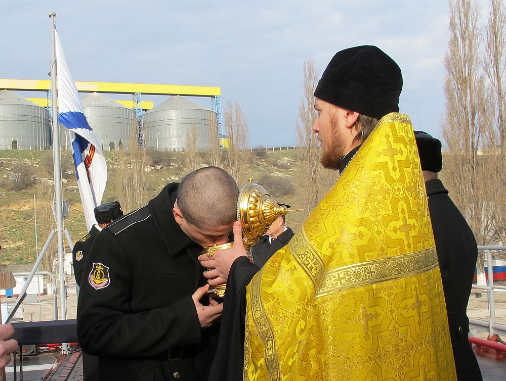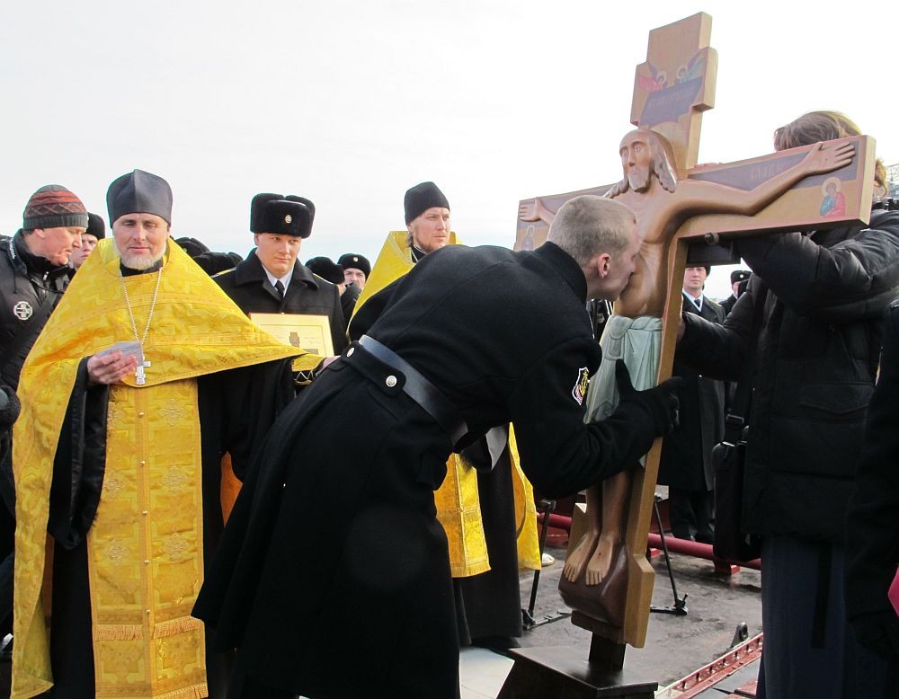 Моряки подарок, разумеется, не проигнорировали. В начале службы во Владимирский храм в Херсонесе вошла сотня матросов — как и положено, строем. Расположились двумя колоннами, молча слушали, почти не крестились. Во время причастия явно разделились: большая часть выполнила команду «Кру-гом» и покинула храм, остальные направились к Чаше — и утвердительно отвечали на вопросы об исповеди. К Годеновскому кресту прикладывались очень немногие, хотя к тому времени его историю успели озвучить с амвона.