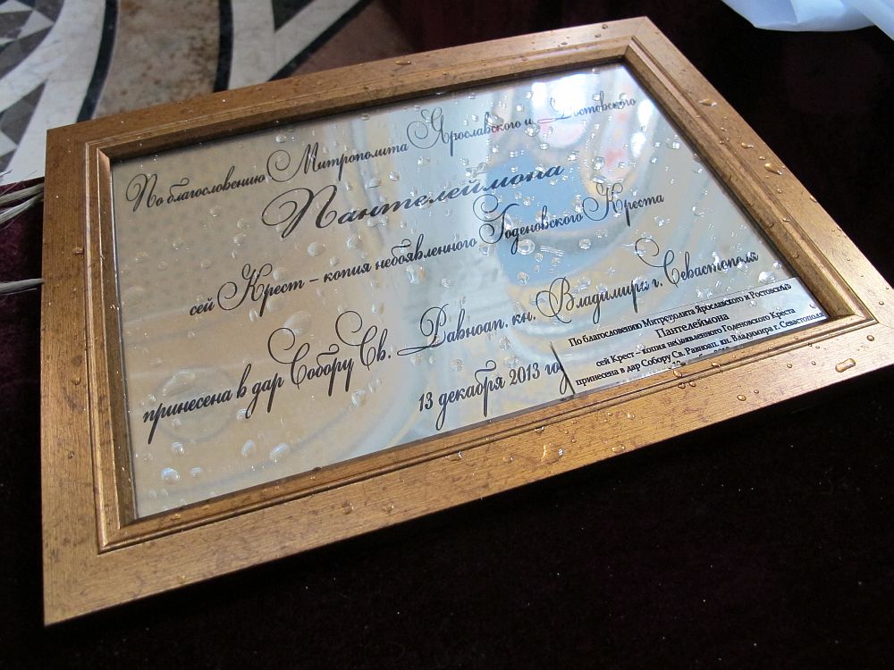 Точную копию «Годеновского» Креста Господня привезли из Ярославской епархии в дар морякам — она будет стоять во Владимирском соборе на центральном холме Севастополя, а это главный храм Черноморского флота.