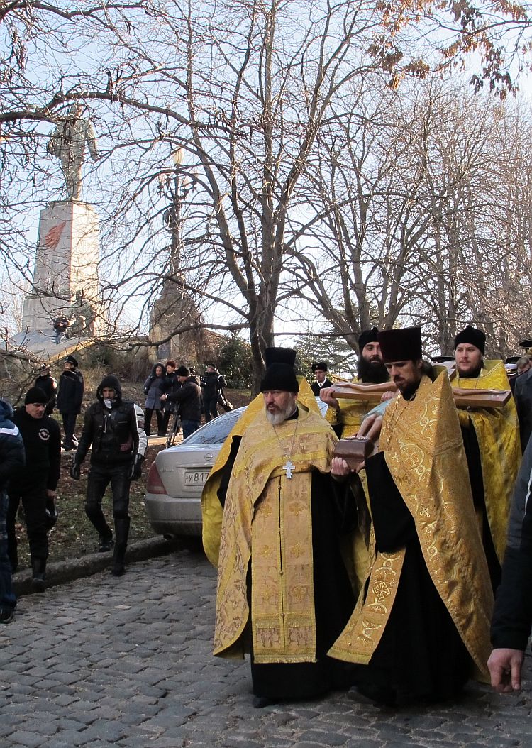 — Торжественная передача копии Животворящего Креста Господня Владимирскому собору в Севастополе, совместные богослужения с участием русских и украинских священников — знак единства православных народов и призыв беречь общую веру.