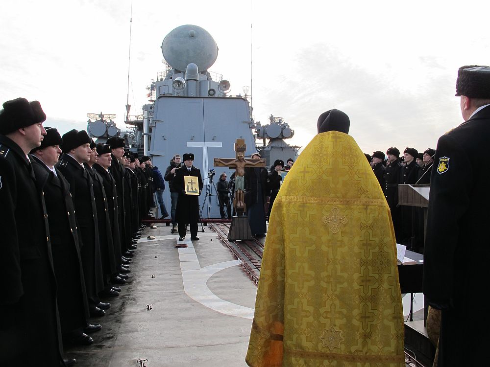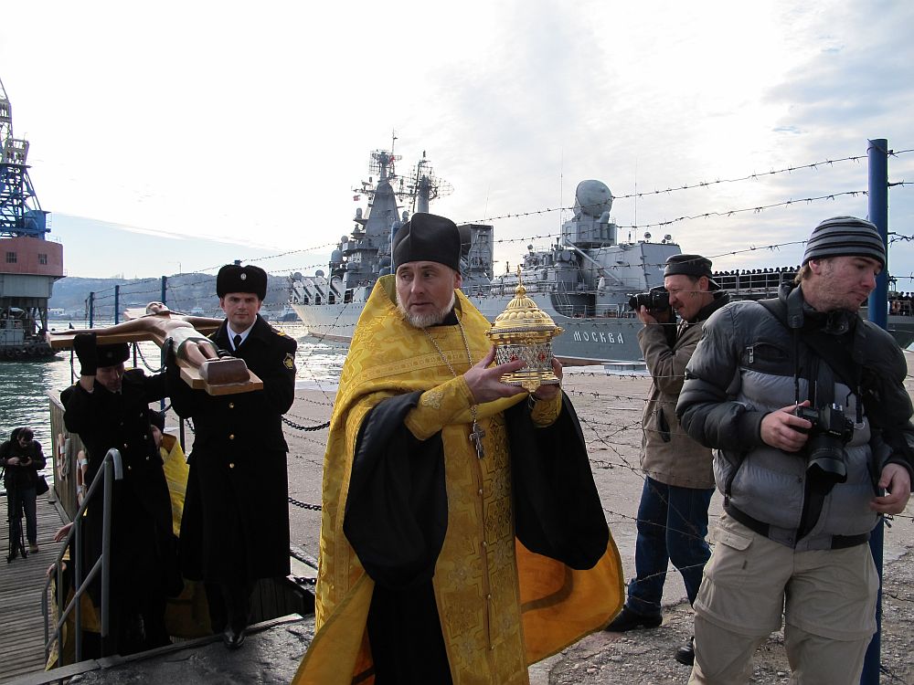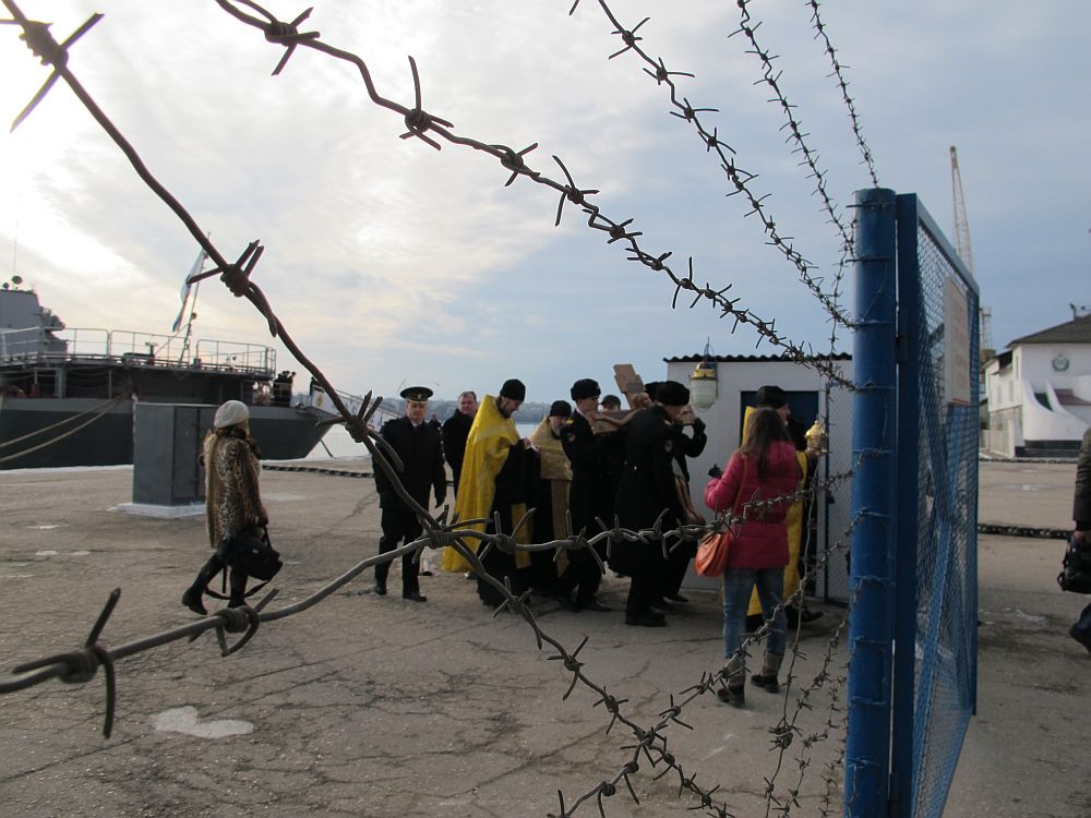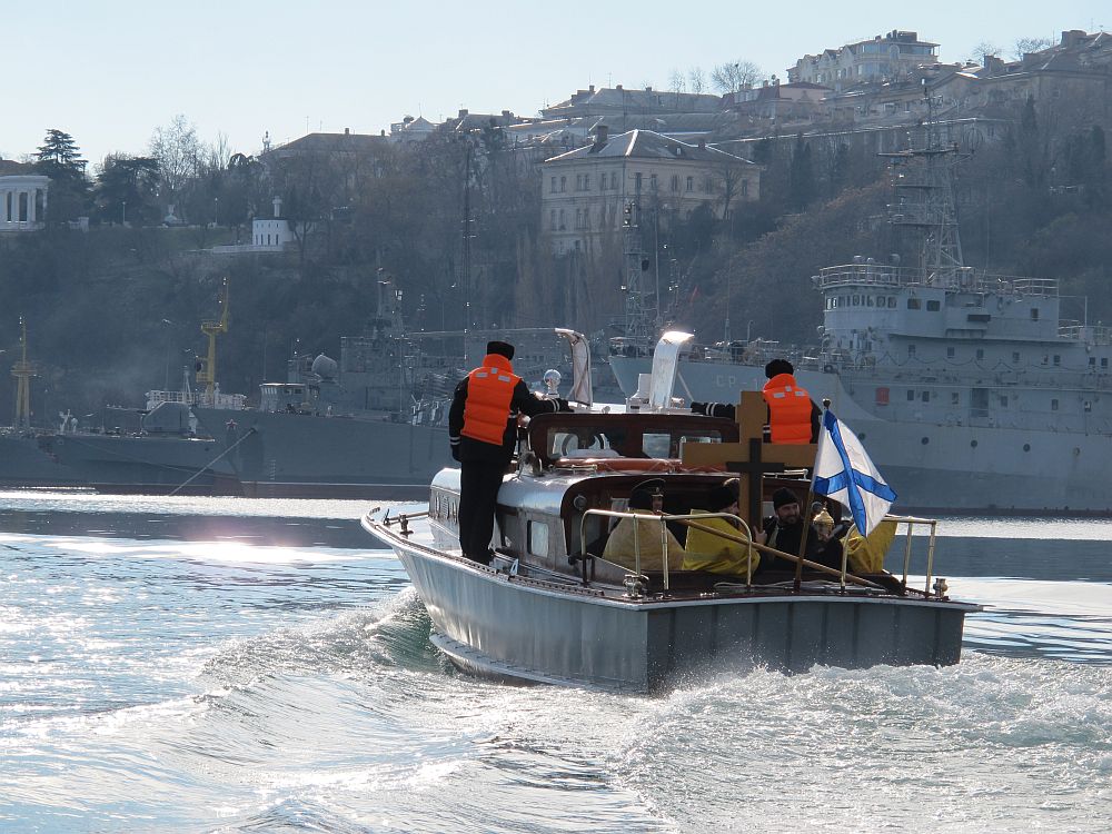 Без нот трагизма, зато с нотой романтики именно на этой пристани крест погрузили в катер и отправились на ракетный крейсер «Москва». Шли не кратчайшим путем — по дороге осеняли крестом российские и украинские корабли в Южной бухте.