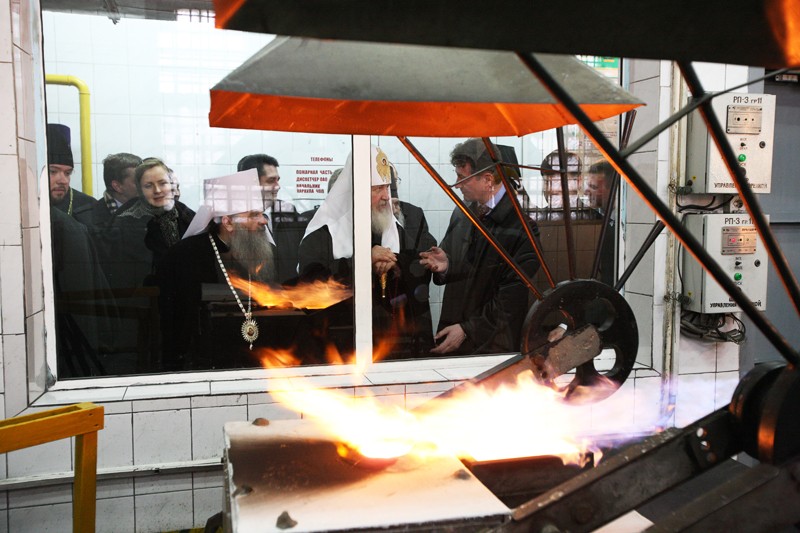 . В одном из цехов состоялась встреча Его Святейшества с коллективом завода, в ходе которой Предстоятель Русской Православной Церкви поделился своими размышлениями о значении труда и справедливого распределения его результатов.