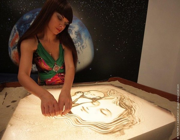 — Я вас разочарую: это просто материал. Может, у всех художников так. И мне слегка не хватает его скорости: песок быстрее, чем карандаш, но он медленнее, чем моя мысль. Он не делает необычных вещей, я его за это очень люблю. С песком не бывает никаких фокусов, всё как есть, так и есть. В монтаже видно, как всё рождается. Никакой мистики: я с ним не разговариваю, он не мой собеседник, он просто природный материал. Как и я материал в руках Божьих. Он служит мне, я служу Богу.