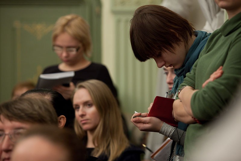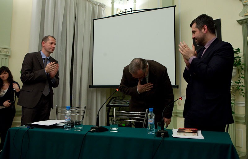 Среди тех, кто пришел в этот вечер на Покровку, были не только многочисленные москвичи, знающие и ценящие творчество знаменитого режиссера, но и иностранцы - в том числе Апостольский нунций в РФ архиепископ Антонио Меннини и первый секретарь нунциатцуры монс. Висвальдас Кульбокас.