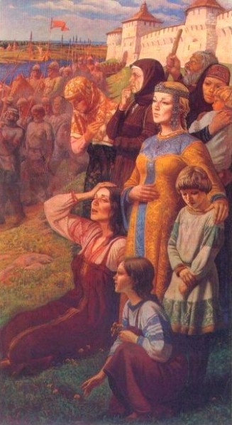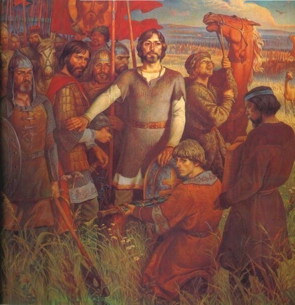 Чуть раньше к теме событий Куликовской битвы обратился выходец из уфимского купечества Михаил Нестеров. Впрочем, выпускника Московского училища живописи, ваяния и зодчества интересовала не только батальная сторона событий 1380 года.