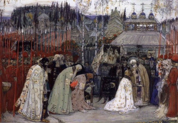 С каждой новой работой образ святого становился все выразительнее, монументальнее и глубже. Не мог Нестеров обойти вниманием и встречу князя Дмитрия с преподобным Сергием.
