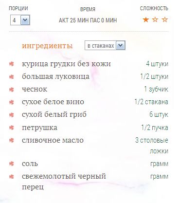 3. Куриные грудки порежьте на 2–3 части. Положите в кастрюлю к луку, слегка обжарьте и через 2 минуты влейте вино. Добавьте соль и свежемолотый черный перец. Дайте вину выпариться 1/3 вина в течение 3–5 минут, влейте грибной бульон, добавьте грибы, накройте крышкой и тушите еще минут 5, пока грудки не будут готовы. Проверьте готовность кухонным термометром, он должен показывать 75 градусов.