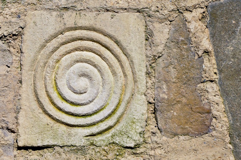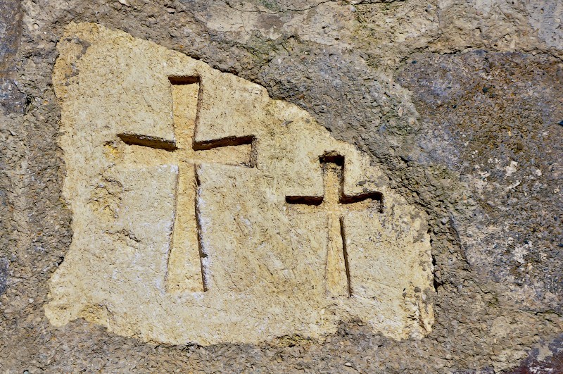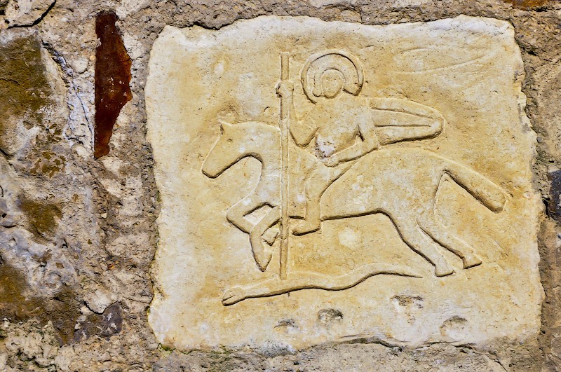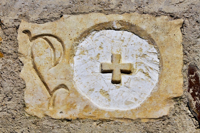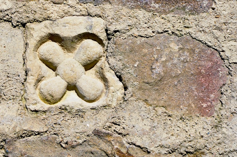 И в завершение рассказа — неожиданные фрагменты декора монастырской каменной кладки: солярные символы соседствуют с христианскими образами.