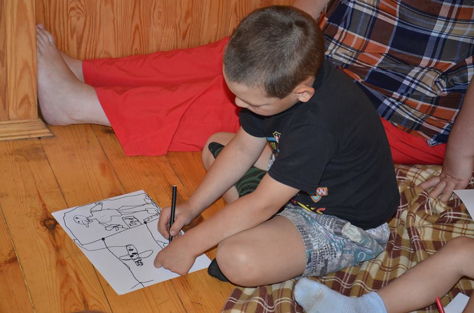 Дети учат родителей общаться с ними сказками. Они часто не могут сказать напрямую, что их тревожит. А в результате такого совместного творчества снимается механизм парализации страха. Ему нужно просто посмотреть в лицо и понять, что он не такой уж и страшный. «Бабах!» — и сделали из него дерево счастья. У большинства детей, которые поехали в лагерь, – в голове страшные сказки, и эти страхи постепенно нужно было скручивать в трубочку и раскрашивать в разные цвета, чтобы впервые даже за несколько лет услышать беззаботный детский смех.
